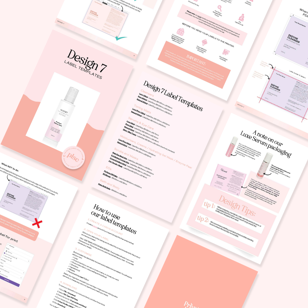 - Links to 18 Canva templates that are sized specific to each retail product (and our different packaging)